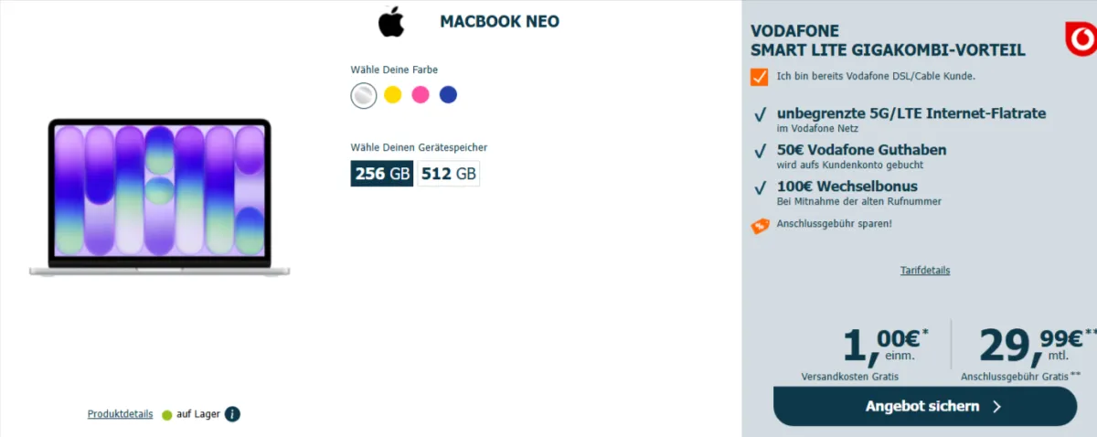 Details – MacBook Neo mit Vodafone Smart Lite Unlimited 5G
