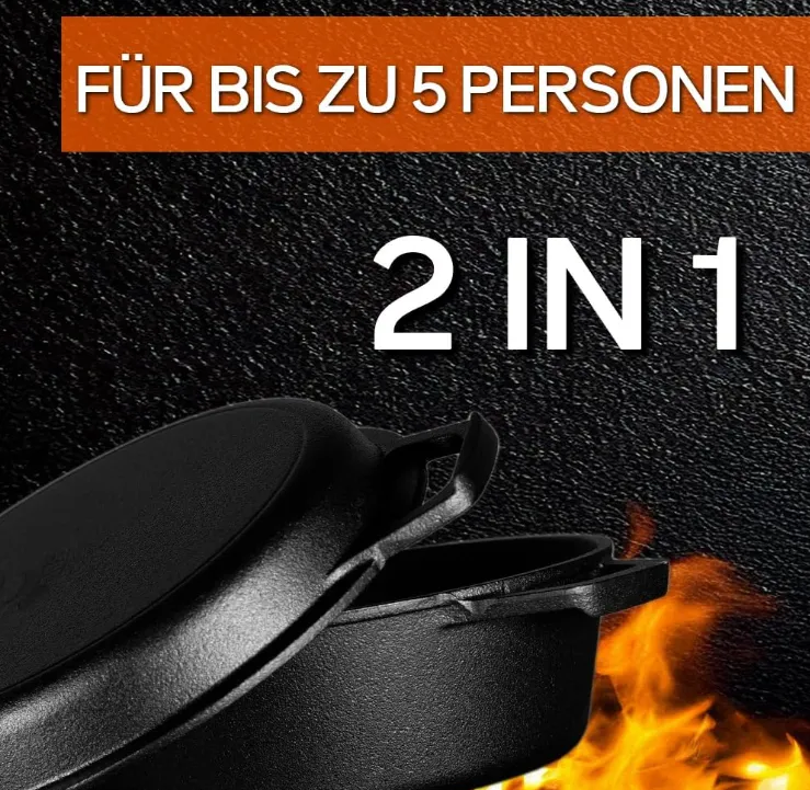 Ein Topf, der gleichzeitig als Pfanne funktioniert, spart nicht nur Platz im Küchenschrank, sondern macht auch draußen am Grill richtig Spaß. Genau hier setzt der Cooker 2126 Multikocher aus Gusseisen an. Für gerade einmal 10,95 € inklusive Prime-Versand – dank 45 % Coupon – bekommt Ihr ein vielseitiges Set, das Kochtopf und Bratpfanne kombiniert. Besonders spannend: Der Deckel lässt sich separat als Pfanne nutzen, was in dieser Preisklasse selten ist.
