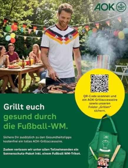 Wenn die Temperaturen steigen und die Fußball-WM vor der Tür steht, wird der Grill wieder zum Mittelpunkt im Garten oder auf dem Balkon. Genau hier setzt die aktuelle Aktion der AOK Bayern an: Ihr könnt euch ein praktisches Grillaccessoire komplett kostenlos sichern – ohne Kaufpflicht. Zur Auswahl stehen eine Grillschürze, ein Grillmesser oder eine Grillzange. Zusätzlich landet ihr automatisch im Lostopf für ein größeres Sommerpaket inklusive WM-Trikot.