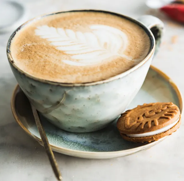 - Zwei knusprige Biscoff-Kekse umschließen eine weiche Vanillecremefüllung