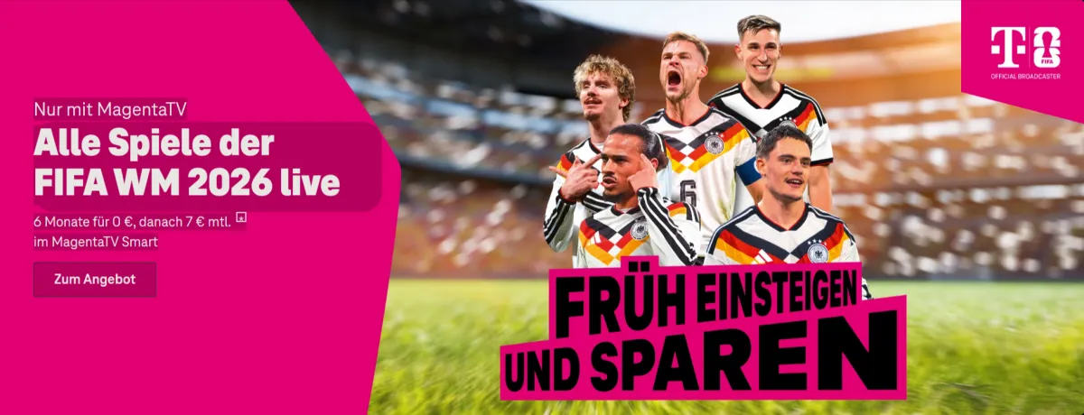 Die kommende Fußball-Weltmeisterschaft 2026 wirft ihre Schatten voraus, und genau hier setzt MagentaTV mit attraktiven Einstiegspreisen an. Besonders spannend: Ihr könnt bereits ab 0 € monatlich starten und erhaltet Zugriff auf alle 104 WM-Spiele – darunter zahlreiche Top-Partien und entscheidende K.O.-Duelle. Ein Teil davon ist sogar exklusiv nur bei MagentaTV verfügbar.
