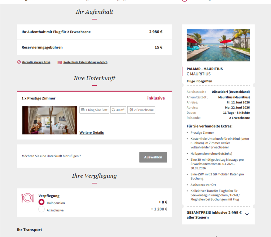 Wichtig zu wissen: Da Voyage Privé exklusive Hotels mit besonderen Konditionen und Extras anbietet, ist eine kurze, kostenlose und unverbindliche Registrierung erforderlich, um die vollständigen Details der Angebote einsehen und nutzen zu können.