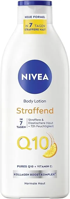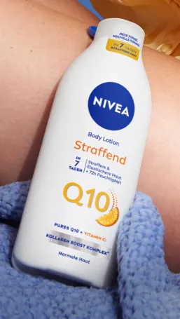 Die NIVEA Q10 Body Lotion richtet sich an alle, die ihre Haut nicht nur mit Feuchtigkeit versorgen, sondern gleichzeitig etwas für die Spannkraft tun möchten. Die Formel kombiniert Q10, ein natürlicher Bestandteil der Haut, mit Vitamin C, das für seine antioxidativen Eigenschaften bekannt ist. Ergänzt wird das Ganze durch einen Kollagen Boost Komplex, der die Hautstruktur unterstützen soll.