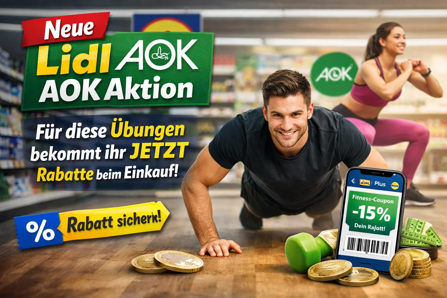 Neue Lidl AOK Aktion 2026 : Für diese Übungen bekommt ihr jetzt Rabatte beim Einkauf