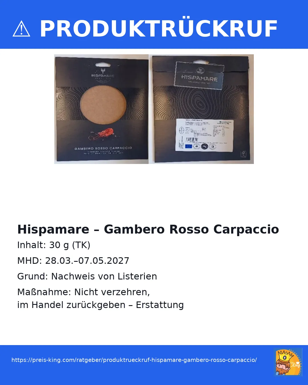 Produktrückruf Hispamare – Gambero Rosso Carpaccio
