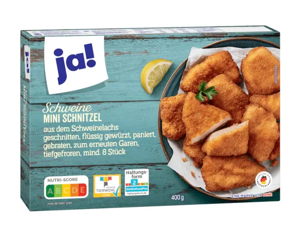 - Produkt: ja! Schweine Mini Schnitzel (400 g, tiefgefroren)