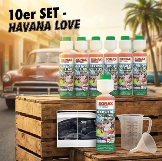 Das Besondere daran: Aus dem hochkonzentrierten Reiniger lassen sich insgesamt bis zu 25 Liter Scheibenreiniger mischen. Damit seid Ihr nicht nur für eine Saison, sondern oft deutlich länger versorgt. Der fruchtige Duft „Havana Love“ sorgt zusätzlich für eine angenehme Note im Alltag.